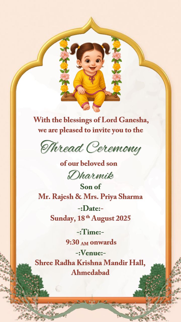 Traditional Thread Ceremony Invitation with Floral Decor and Festive ...