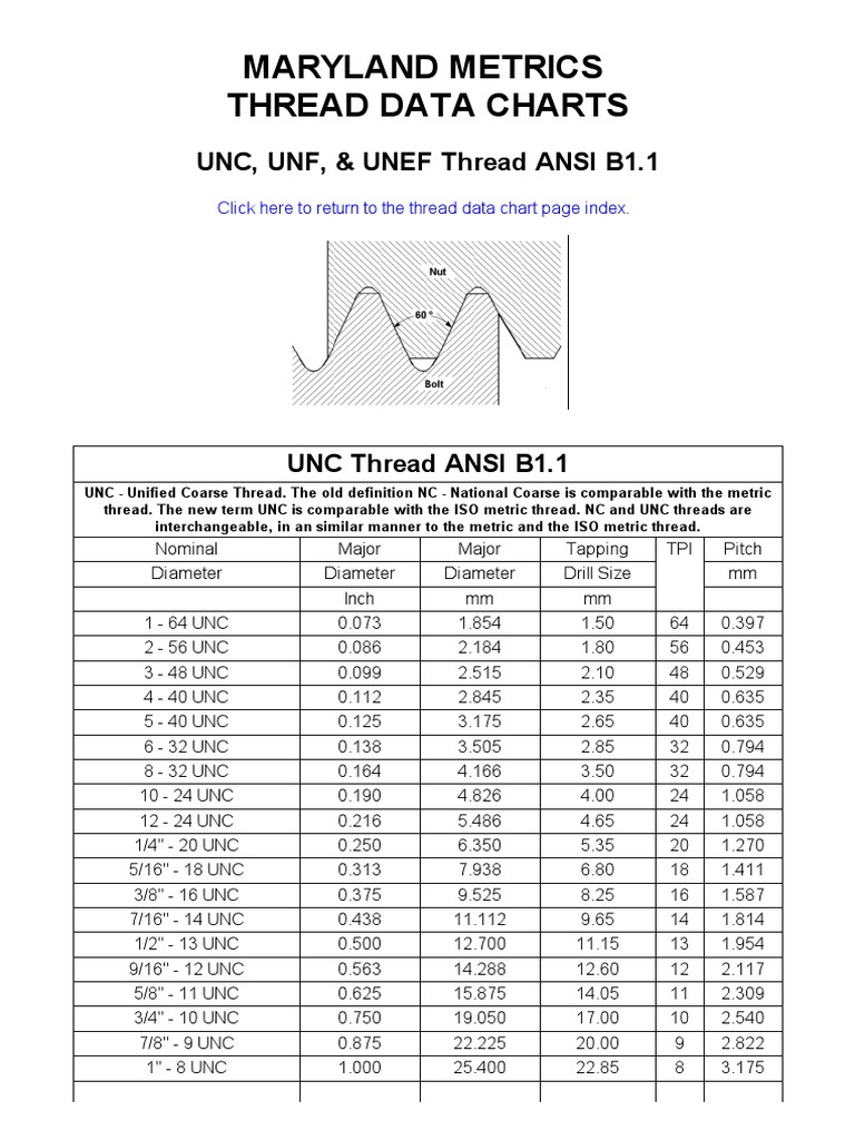 Thread Chart (UNF-UNC) Major And Minor Diameters, 54% OFF