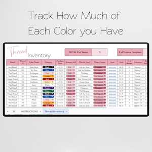 Thread Inventory Tracker Spreadsheet Template, Cross Stitch Thread ...