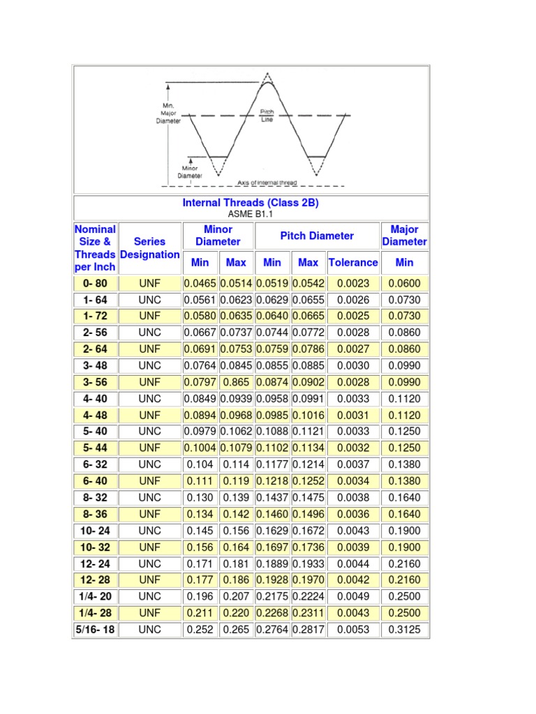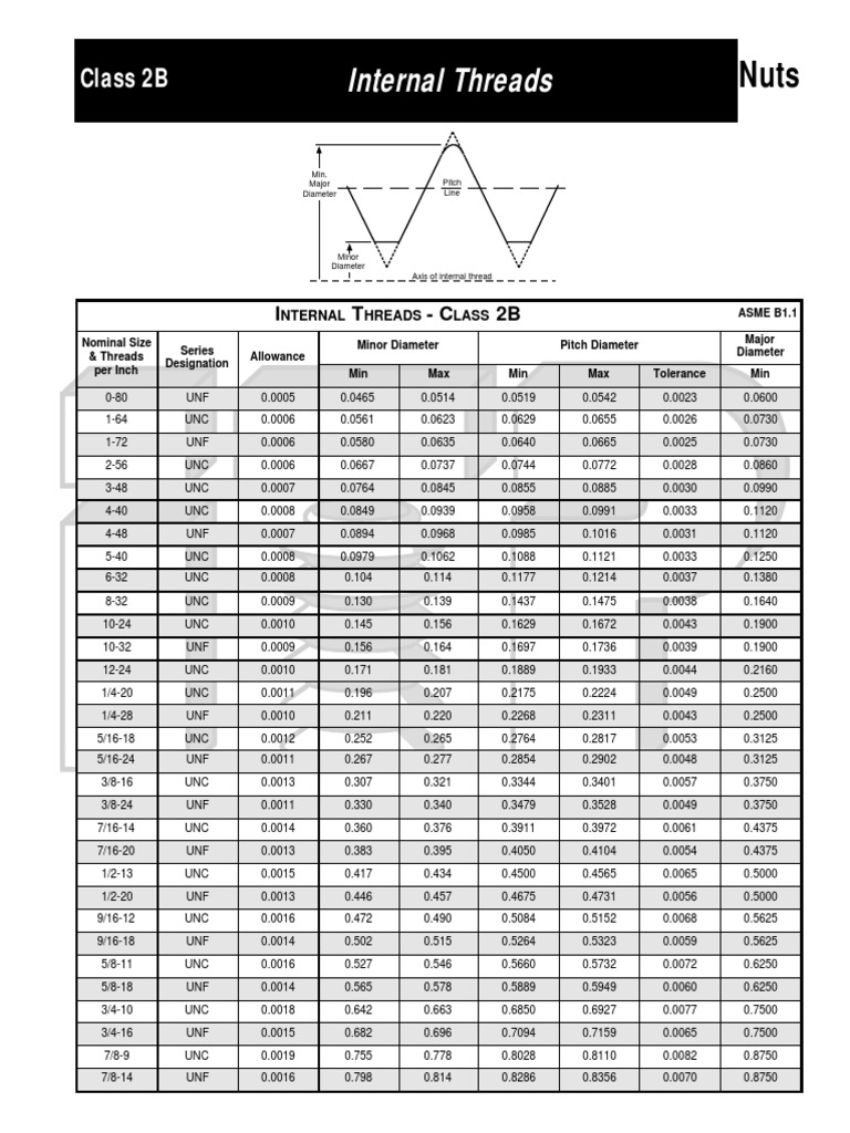 ASME Standard Thread Dimensions and Tolerances for Class 2B Internal ...