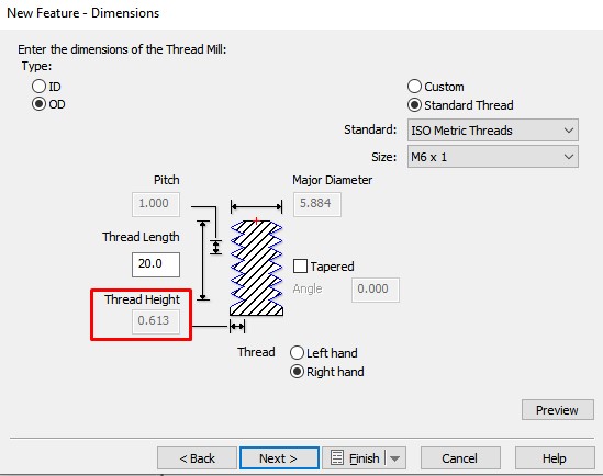 Thread Milling cuts the thread depth too deep in FeatureCAM