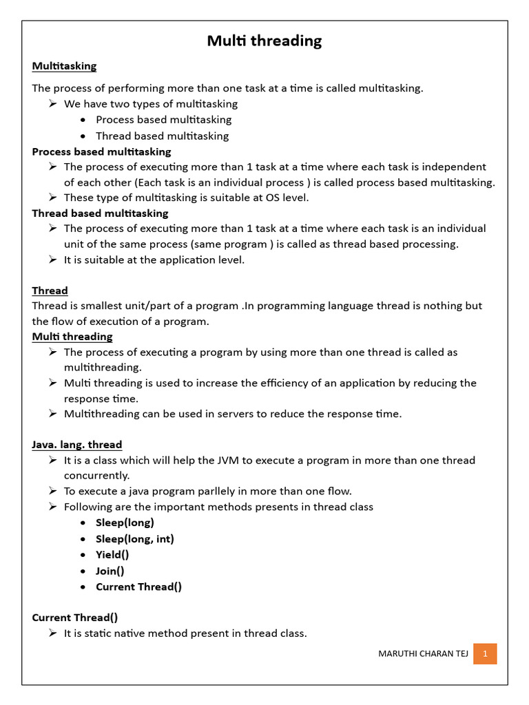 Multi Threading Notes and Interview Questions | PDF | Thread (Computing ...