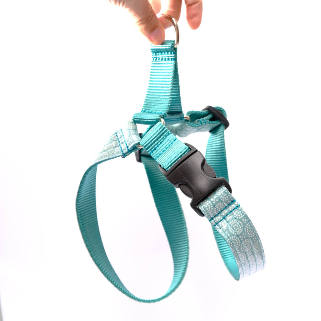 Easy On Laminated Cotton Dog Harness - 'Vibes' Teal and White