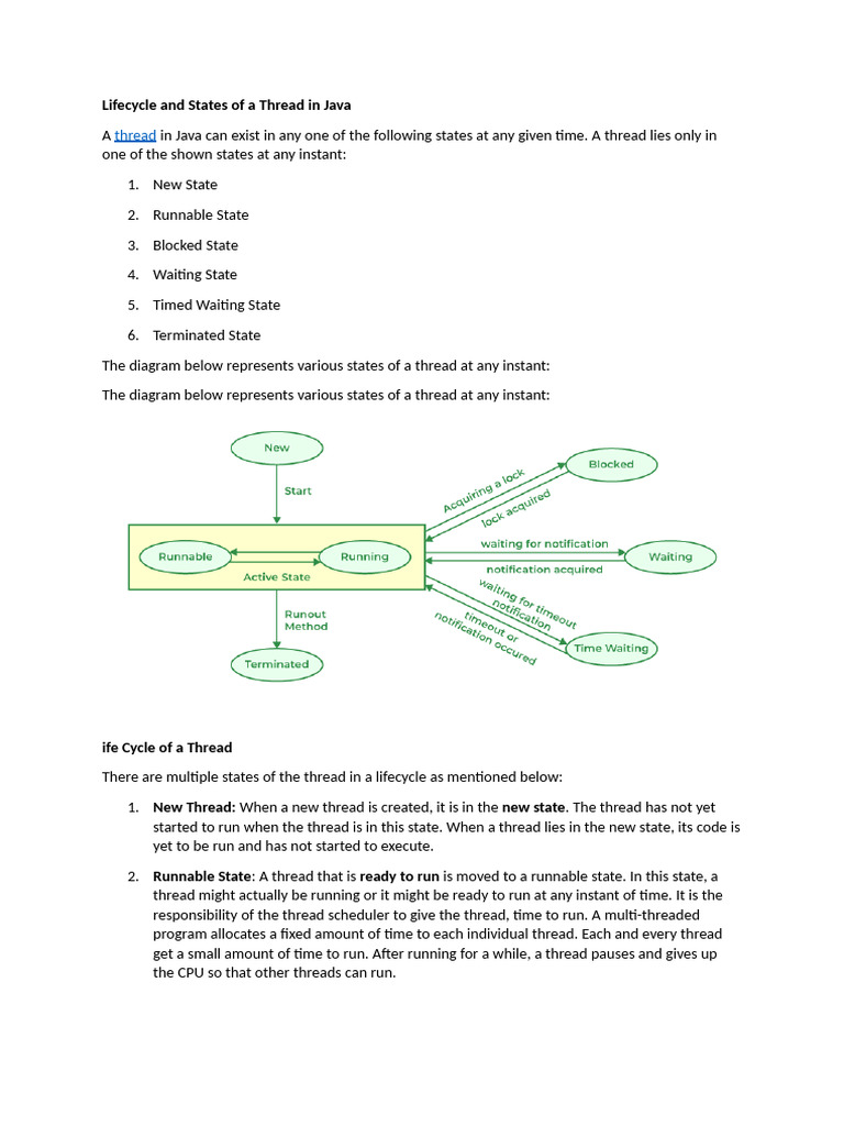 Java Thread Life Cycle Explained | PDF | Thread (Computing) | Software ...