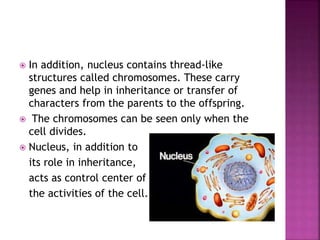 1 Each cell contains a nucleus with chromosomes. These chromosomes ...