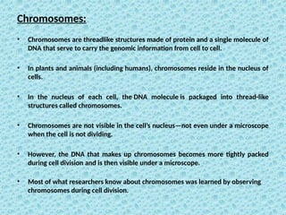 Chromosomes are tiny thread-like structures found inside the nucleus of ...