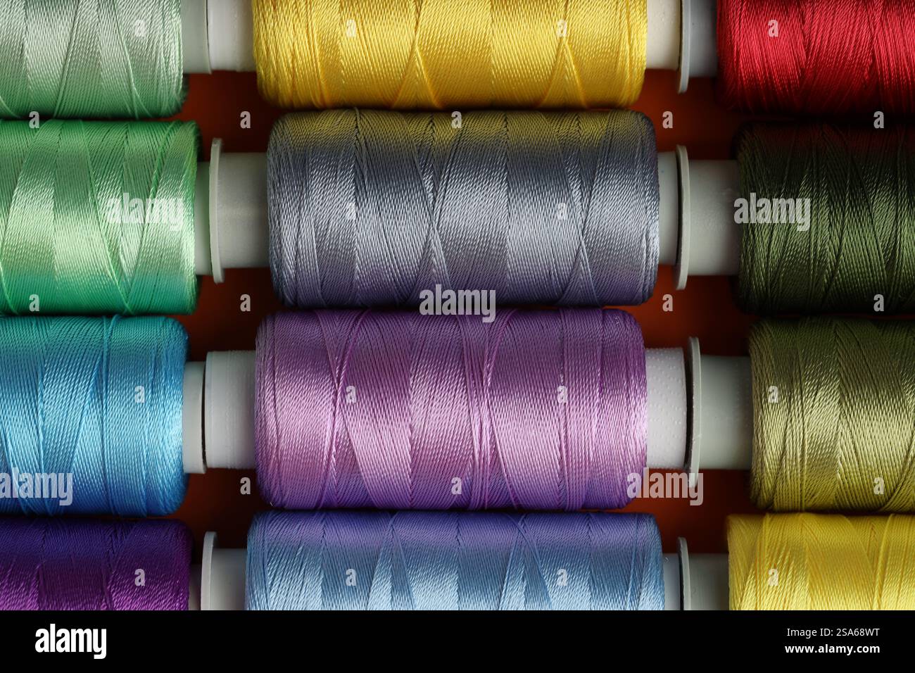 many colorful sewing threads on spools Stock Photo - Alamy
