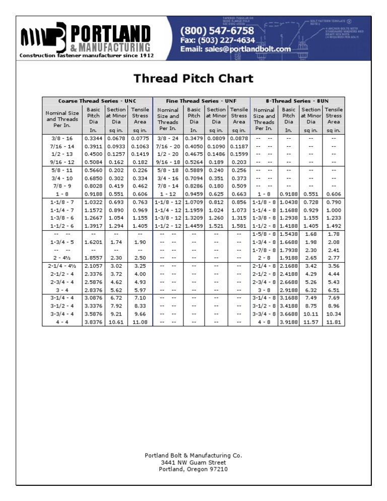 Thread Pitch Chart - Portland Bolt