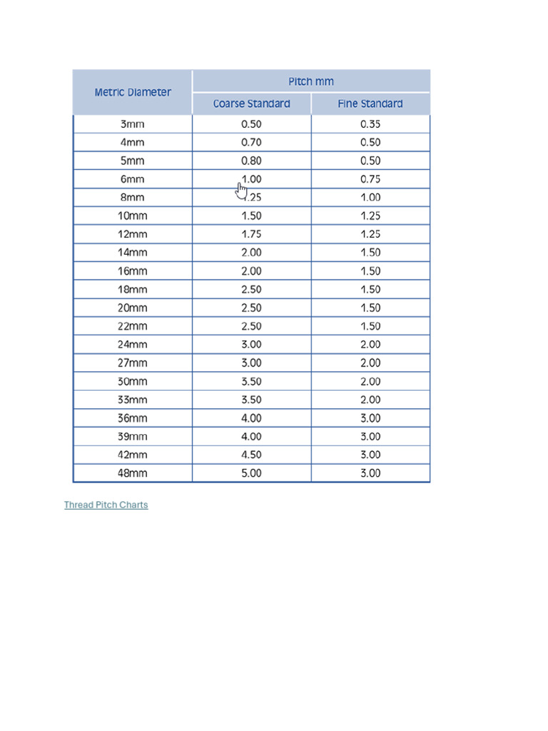 Thread Pitch Chart - Metric | PDF