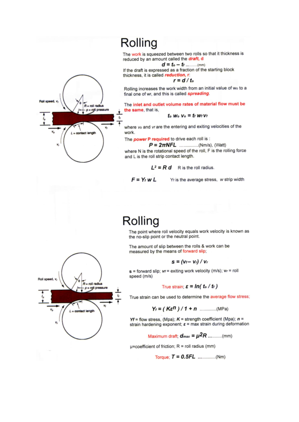 Rolling Process Formula: Key Concepts and Equations - Studocu