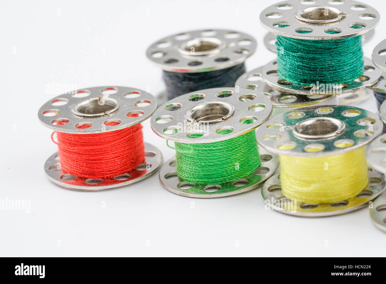 Different thread spools isolated on white background Stock Photo - Alamy