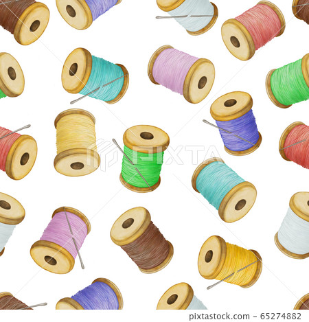 Colourful thread spools, watercolour illustration. Seamless pattern ...