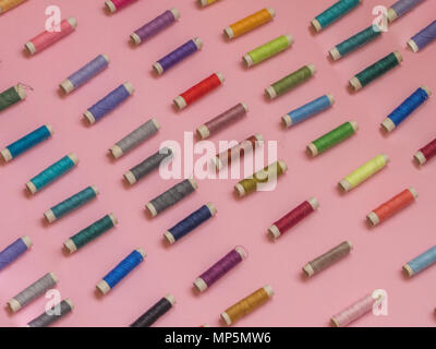 Thread spools pattern on pink background with copy space Stock Photo ...