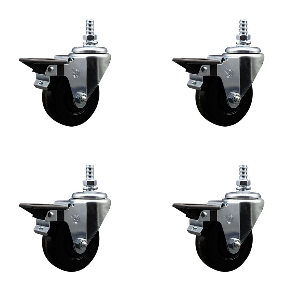 3.5 Inch Phenolic 10MM Threaded Stem Caster Set with Brake - Walmart.com
