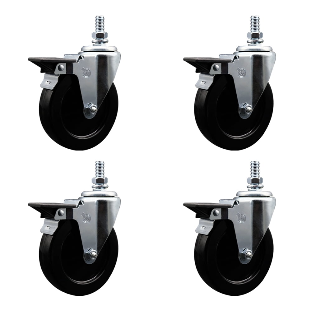 5 Inch Hard Rubber ½ Inch Threaded Stem Caster Set with Brake - Walmart.com