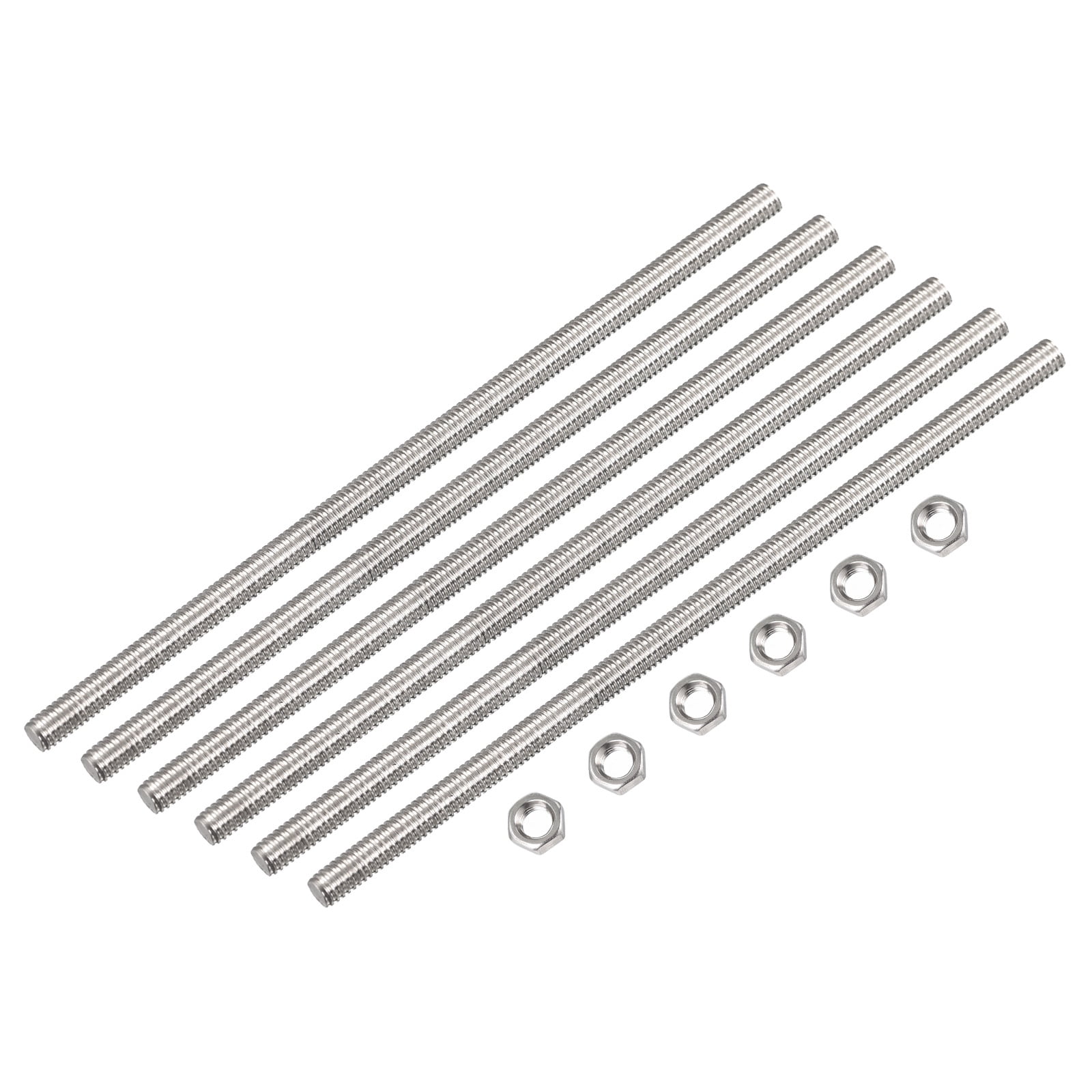 Uxcell 12Pack M6 x 200mm Fully Threaded Rod w 12Pack Hex Nuts, 1mm ...