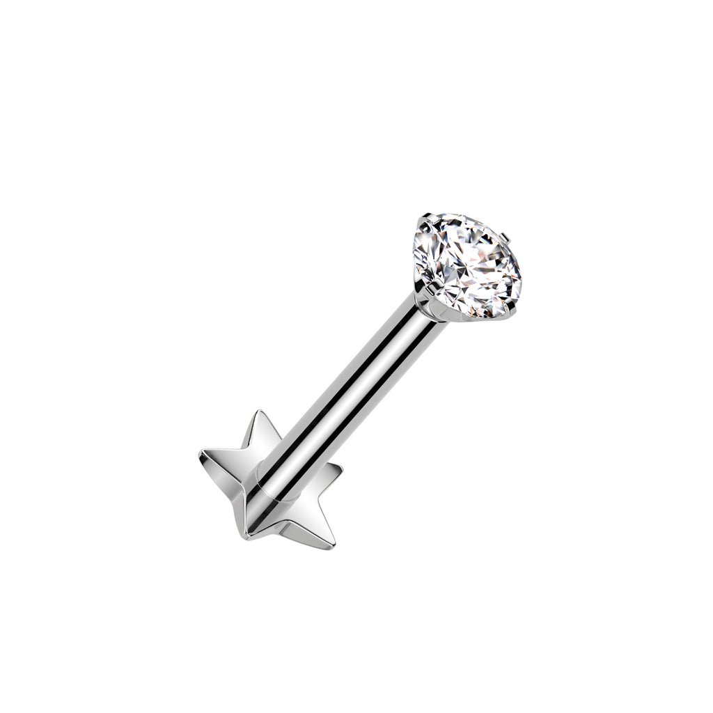 Bezel Clear CZ Rhombus Back Titanium Threadless Labret ...