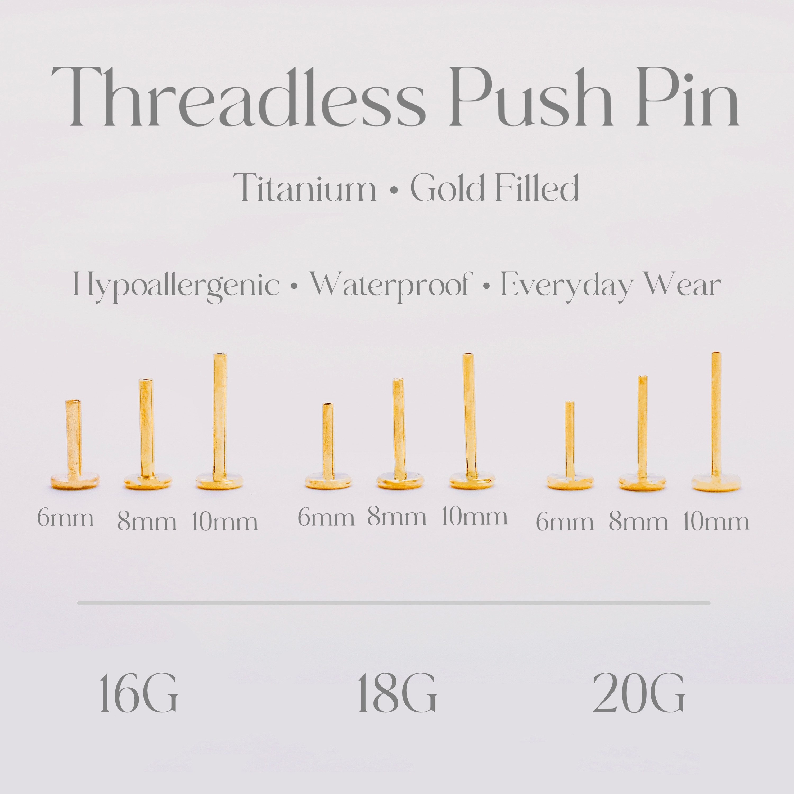 16G/18G/20G Threadless Implant Grade Titanium Posts • Push Pin Back ...