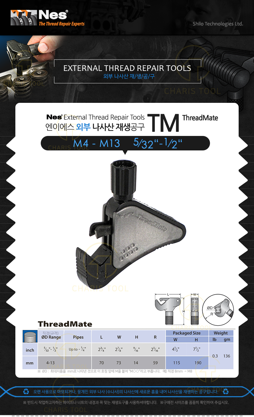 NES 외부 나사선 재생공구 ThreadMate M4-M13 - 카리스툴