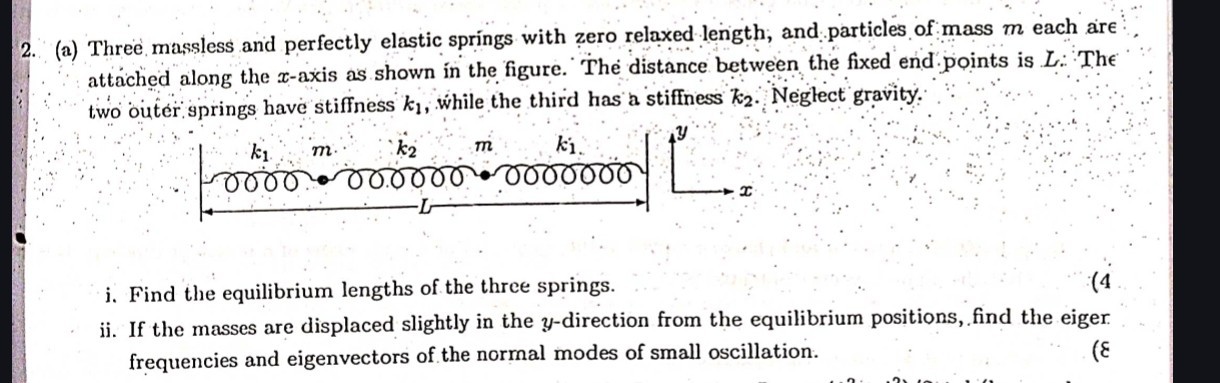 2. (a) Three massless and perfectly elastic springs with...