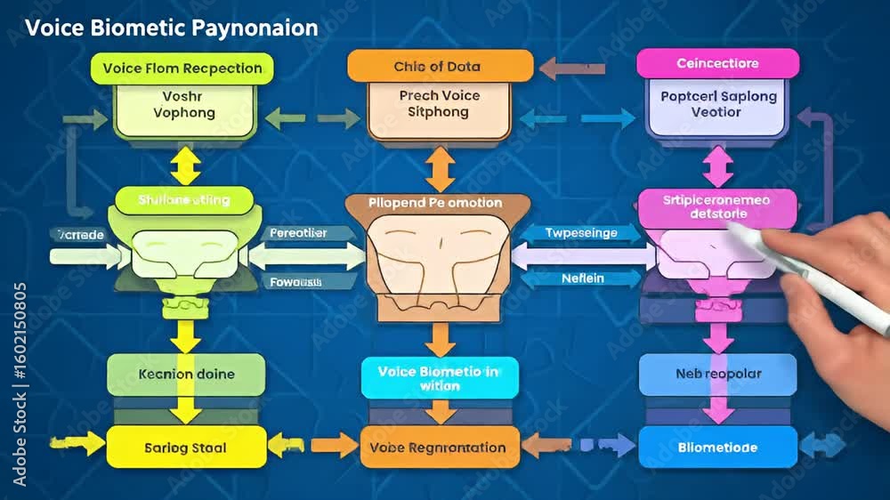 Abstract diagram of a layered flowchart with interconnected nodes on a ...