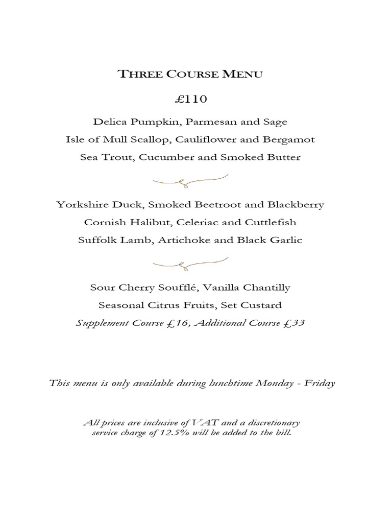 Three-Course Lunch Menu Details | PDF