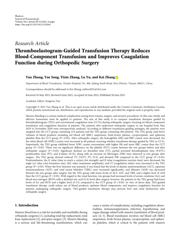 (PDF) Review of Thromboelastography (TEG): Medical and Surgical ...