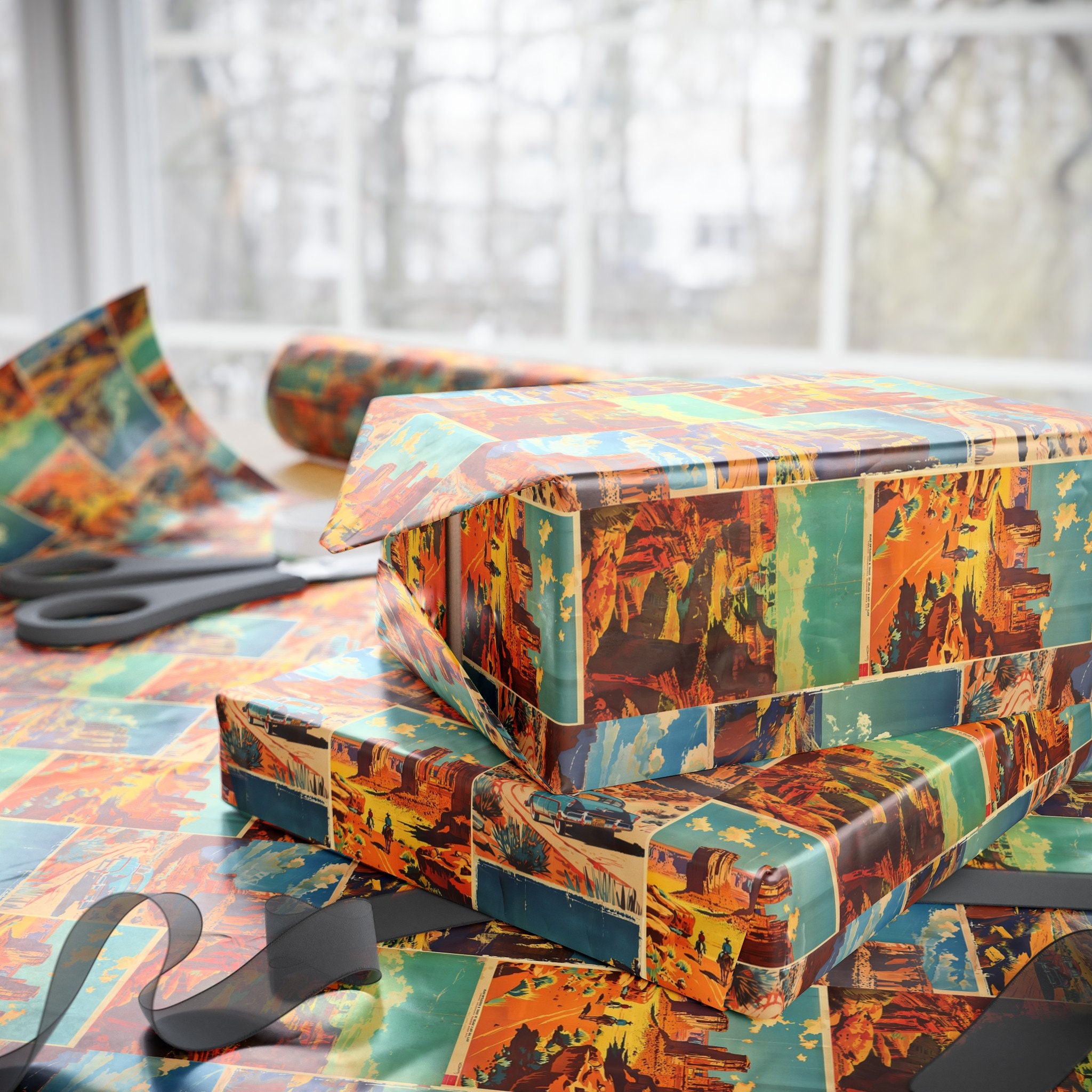 Desert Poster Gift Wrapping Paper Gift Wrap for Nostalgic, Throwback 50 ...