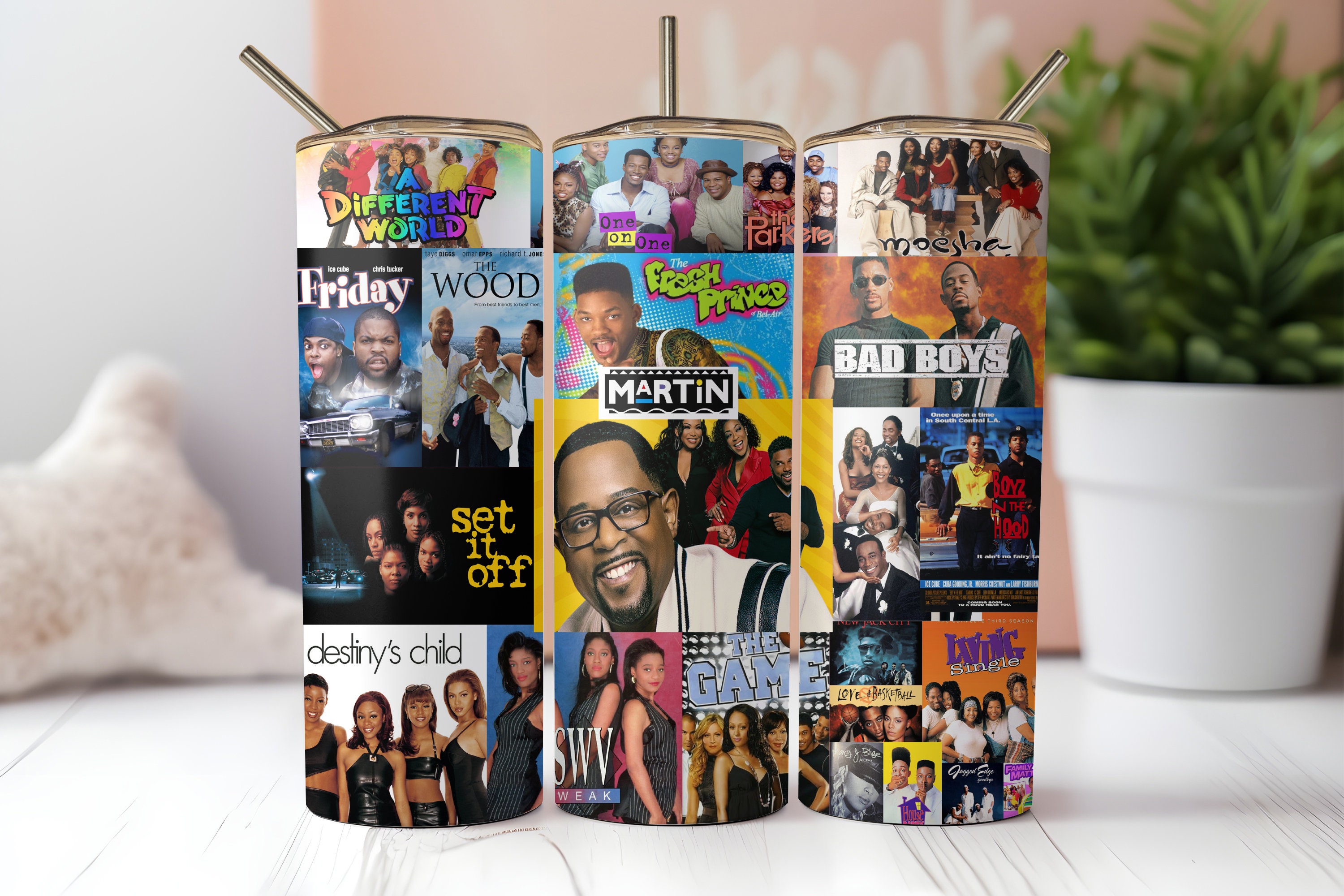 90s Movies Mashup Collage 20oz Skinny Tumbler Wrap | Sublimation ...