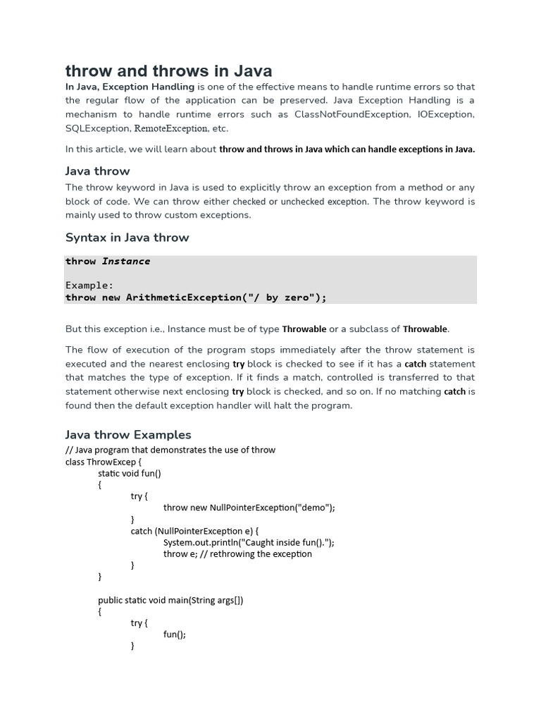 How Does Throws Work In Java at Steven Broadnax blog