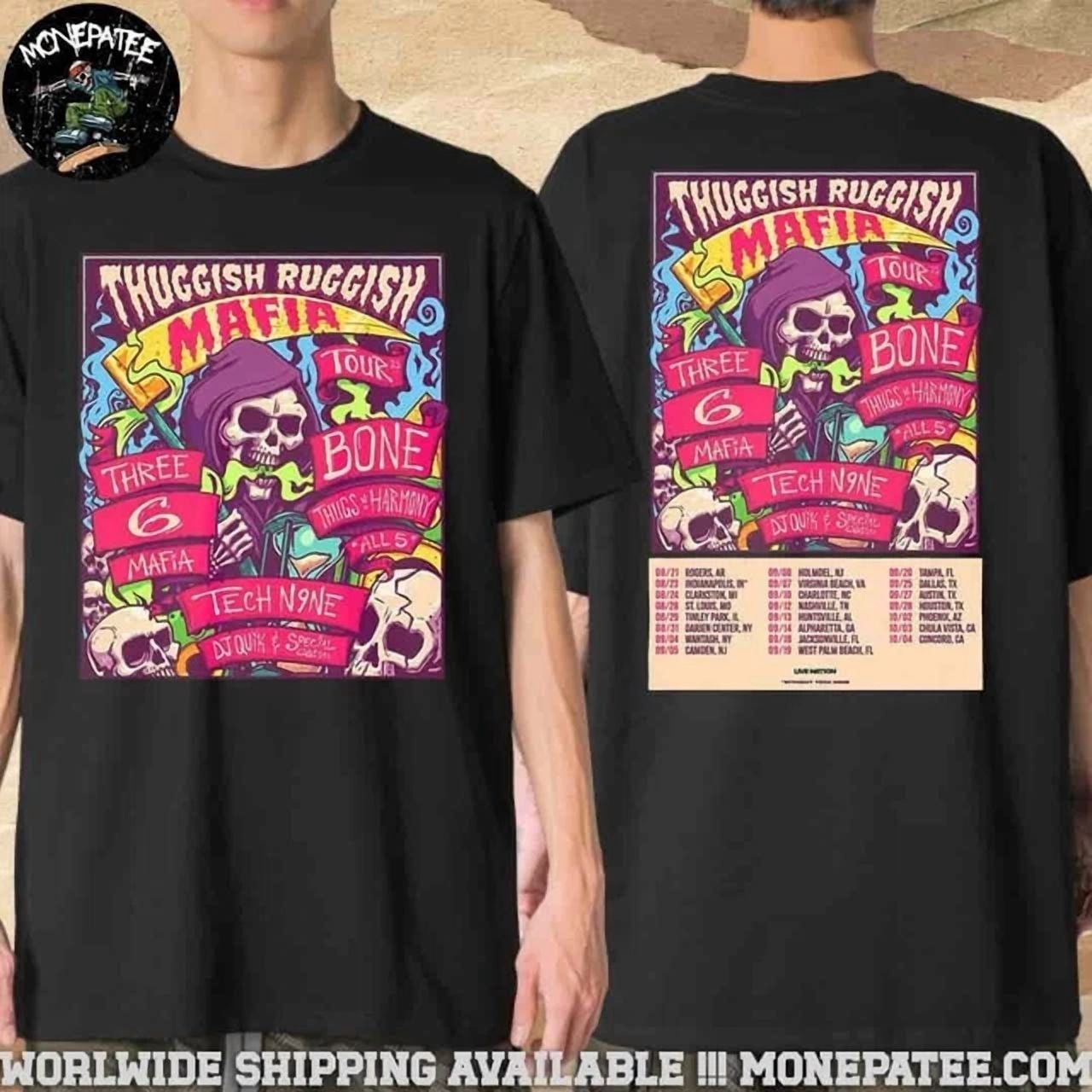 Bone Thugs x Three Six Mafia Thuggish Ruggish Mafia Tour T Shirt,Black ...