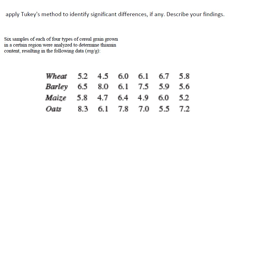Solved Tukey's procedure on the data below to identify | Chegg.com
