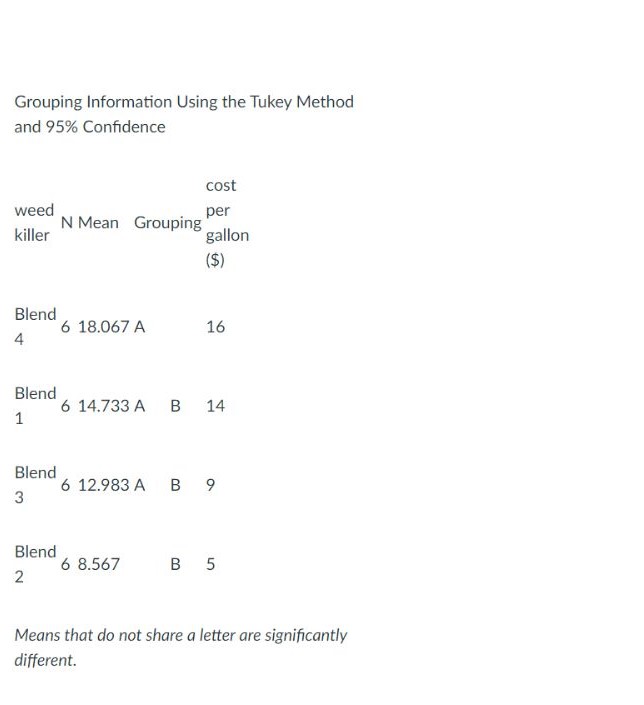 Grouping Information Using the Tukey Method and 95% | Chegg.com