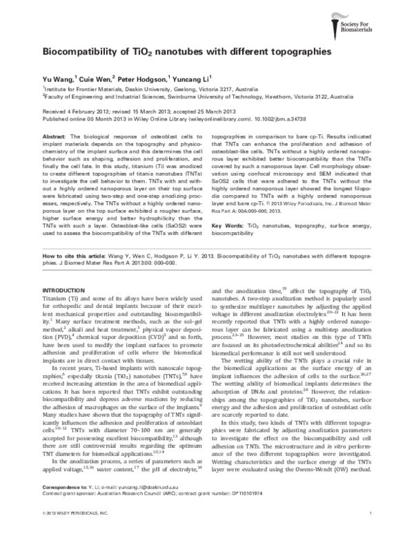 (PDF) Biocompatibility of TiO2 nanotubes with different topographies