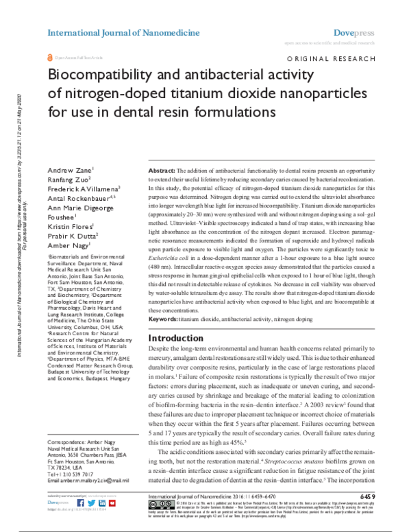 (PDF) Biocompatibility and antibacterial activity of nitrogen-doped ...