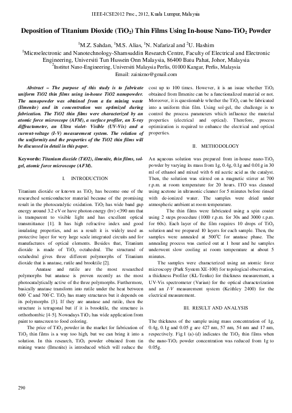 (PDF) Deposition of Titanium dioxide (TiO2) thin films using in-house ...