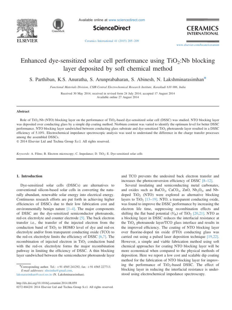 Enhanced Dye-Sensitized Solar Cell Performance Using TiO2 - NB Blocking ...