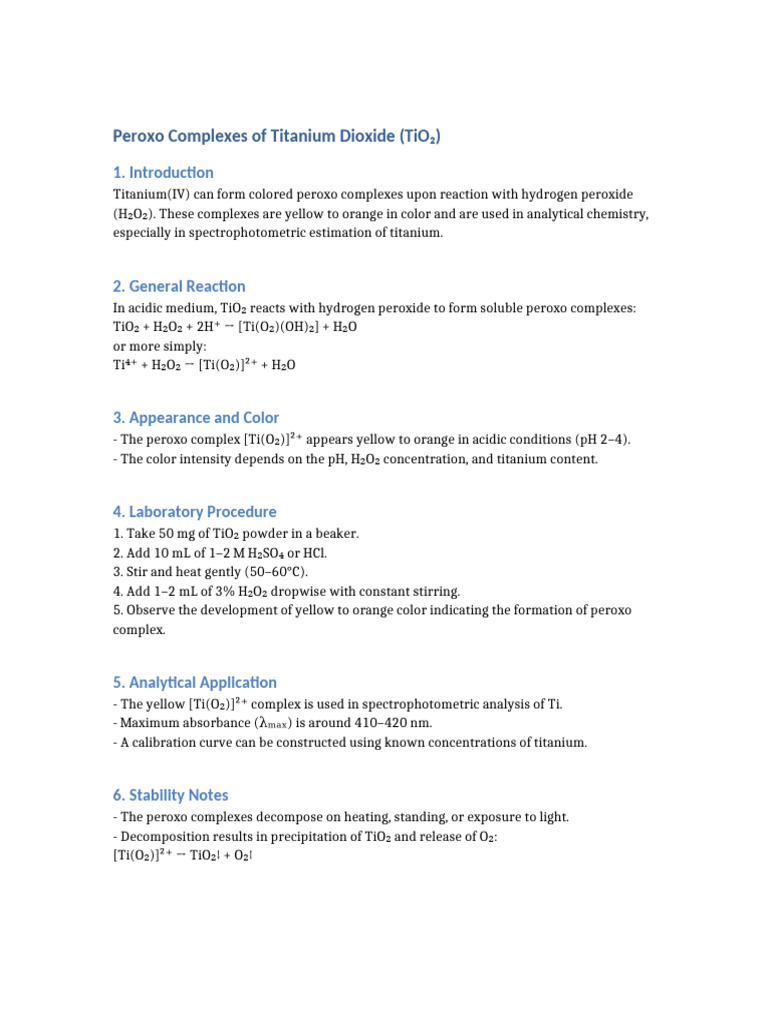 Peroxo Complexes of TiO2 Lab Notes | PDF