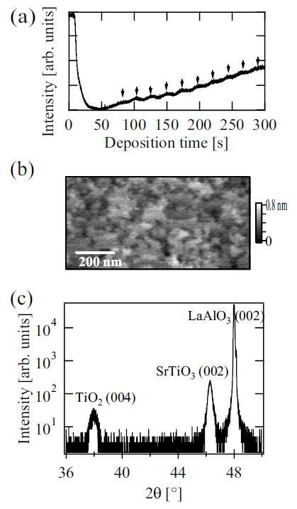 (a) RHEED patterns for Sr2TiO4/SrTiO3 and RHEED oscillations during ...