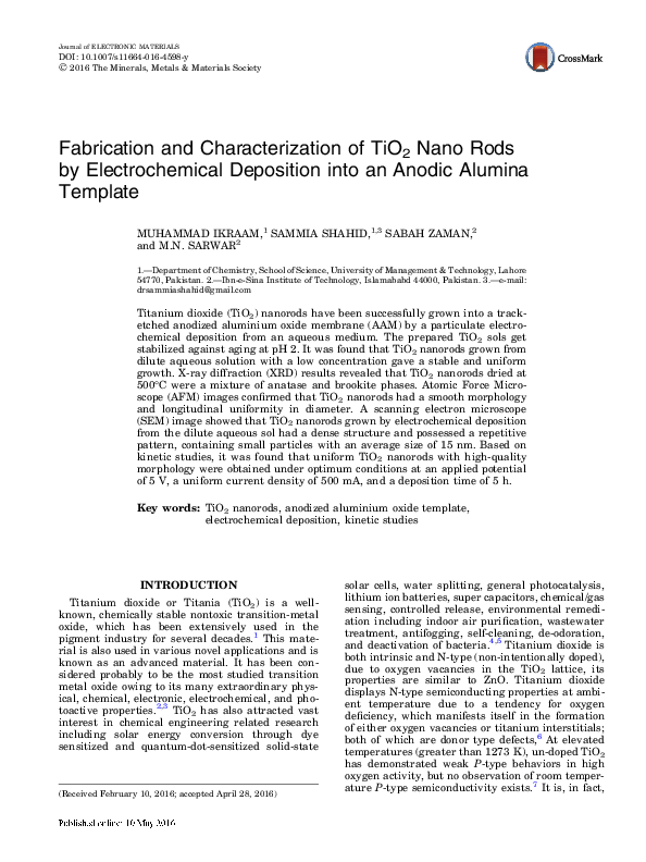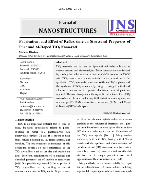 (PDF) Fabrication and Characterization of TiO2 Nano Rods by ...