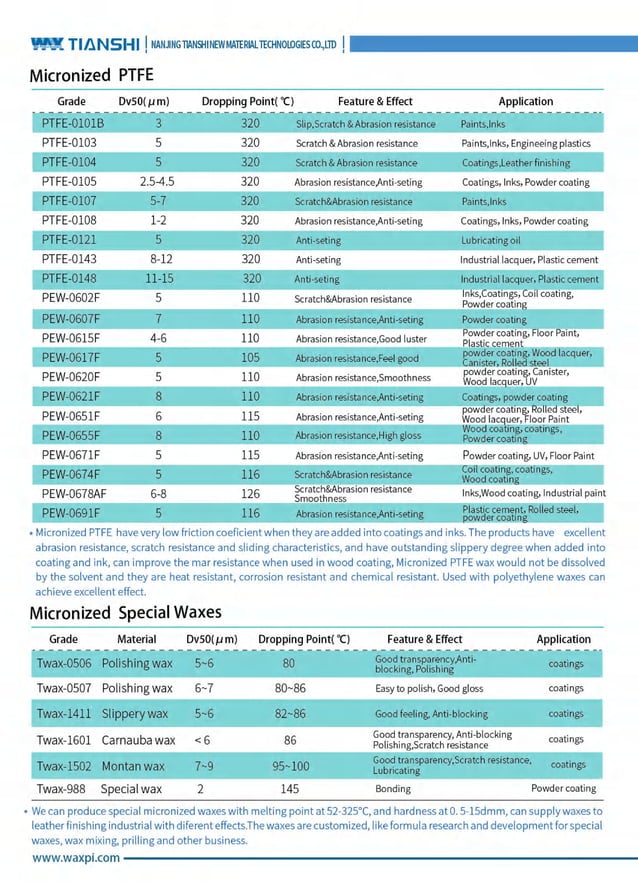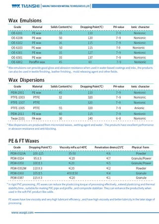Tianshi Wax for printing inks & coatings | PDF
