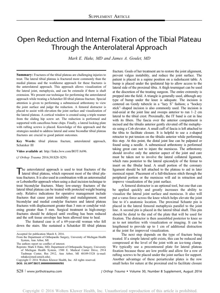Open Reduction and Internal Fixation of The Tibial.13 | PDF | Knee ...