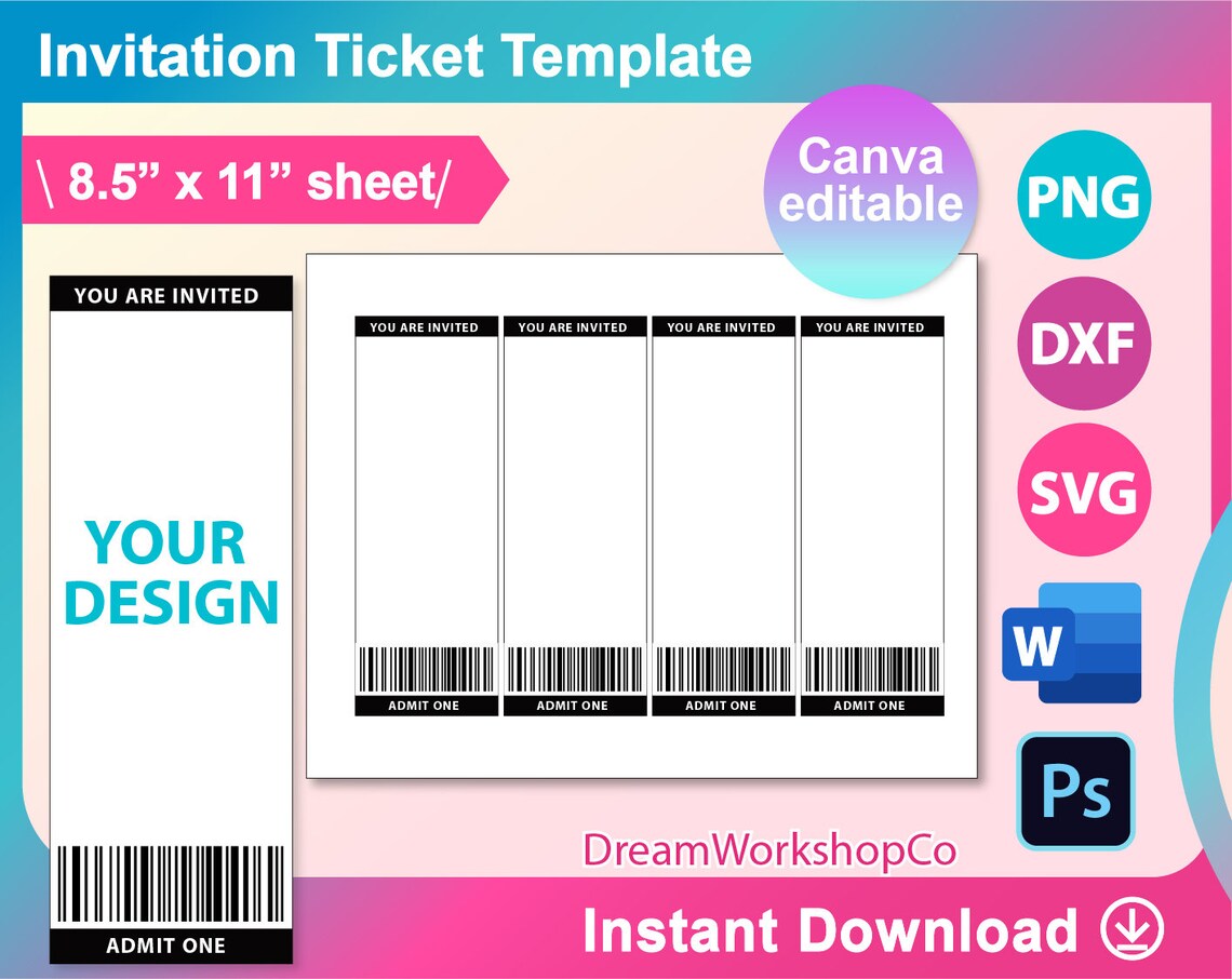 Invitation Ticket Template black Color Psd Png Svg Pdf - Etsy