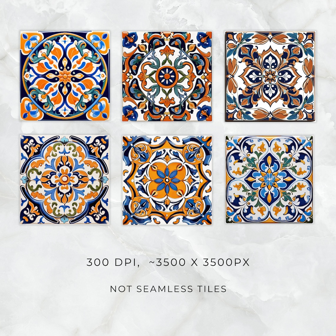 Mediterranean Tile Clipart Bundle, Watercolor Tile Graphics, Portuguese ...