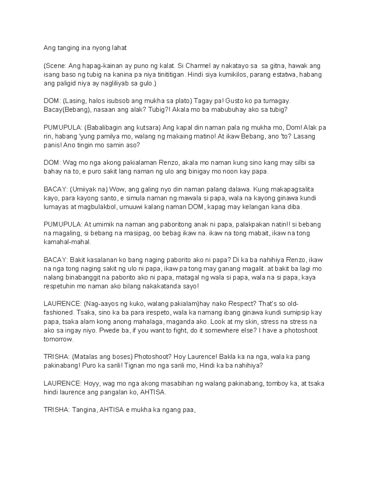 Script: Ang Tanging Ina (Dramatic Family Confrontation) - Studocu