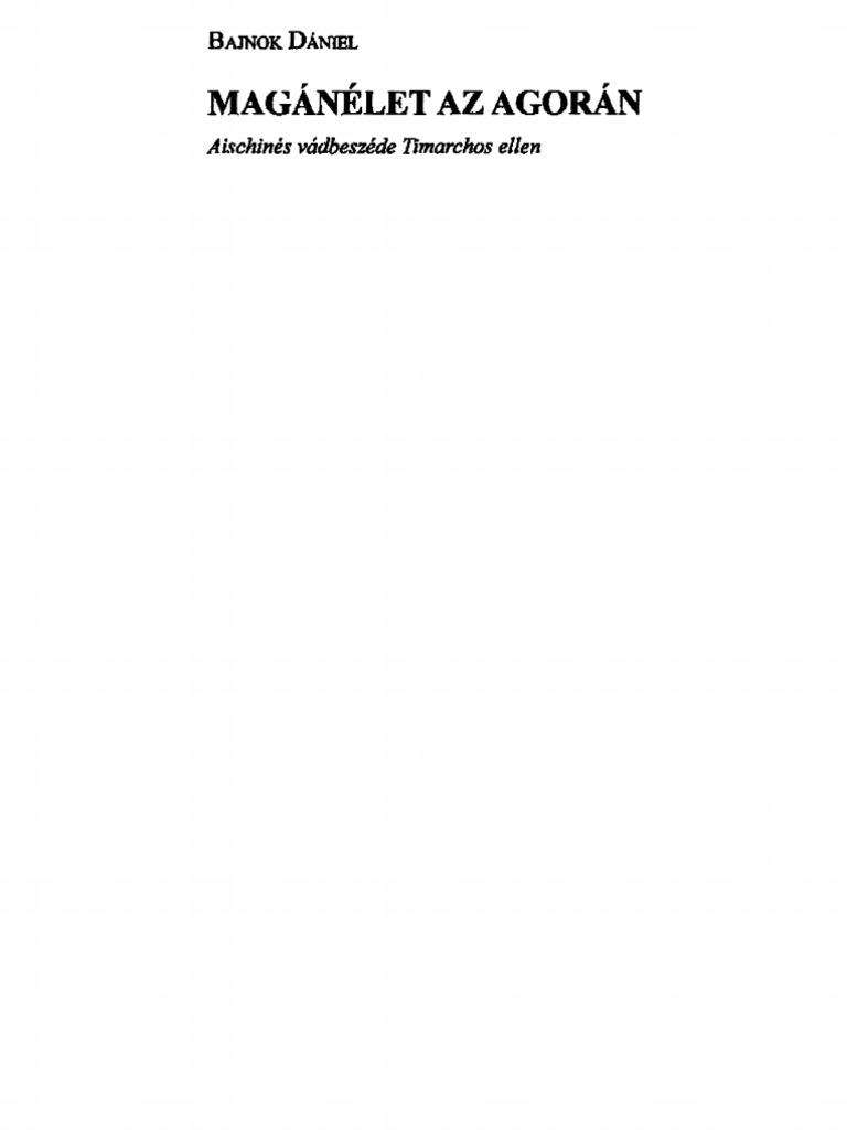 Magánélet Az Agorán - Aischinés Vádbeszéde Timarchos Ellen - Bajnok ...