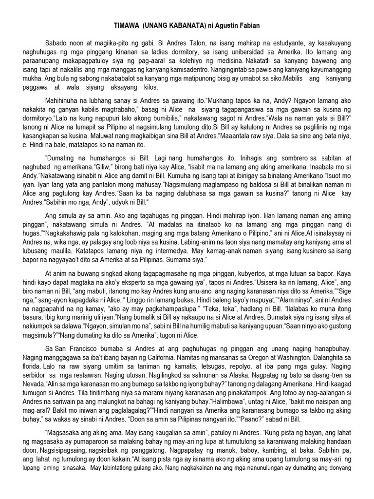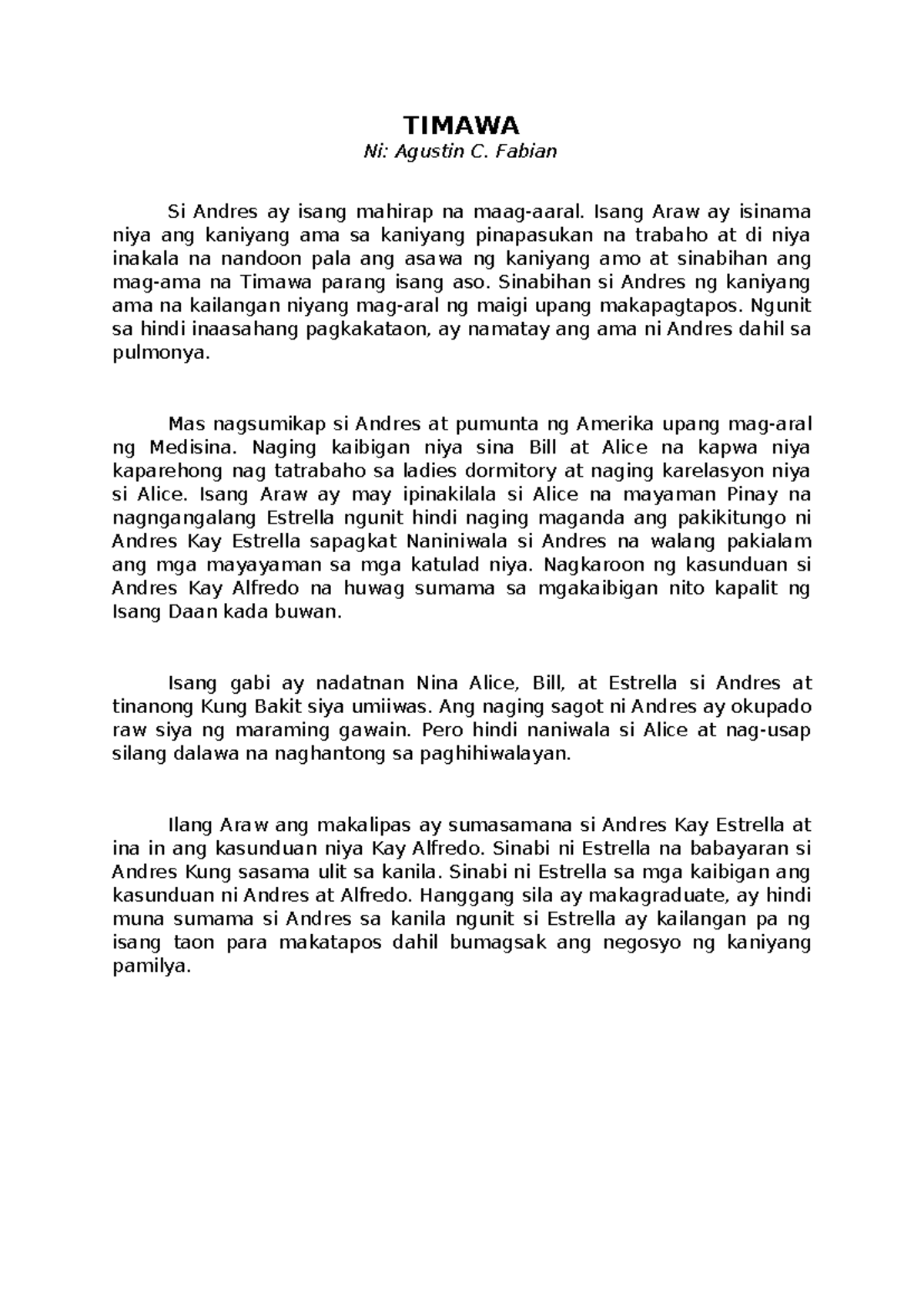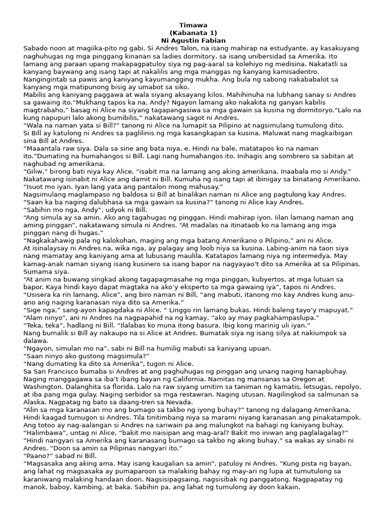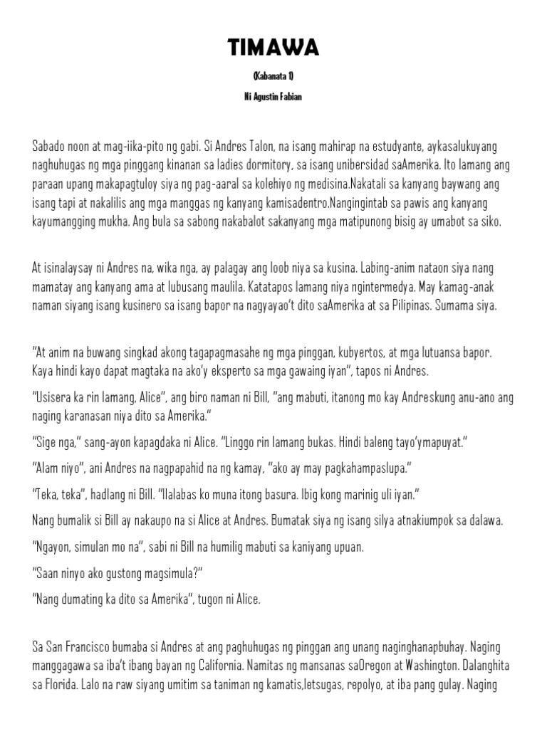 Kuwento- Timawa.docx - Timawa Unang Kabanata Agustin C. Fabian Sabado ...