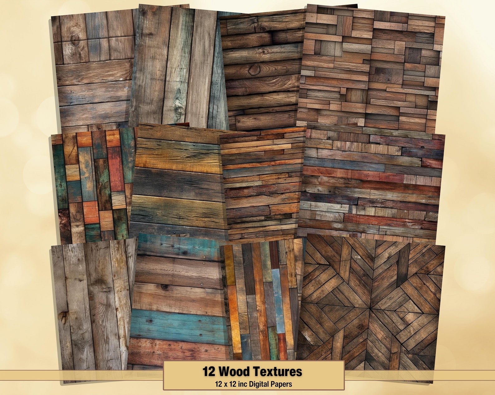 12 Shabby Wood Digital Paper, Wood Texture Paper, Rustic Wood ...
