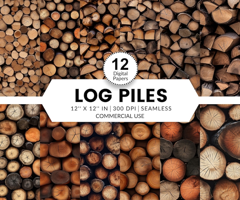 12 Log Piles Digital Papers, Seamless Patterns, 12x12, Realistic 3D ...