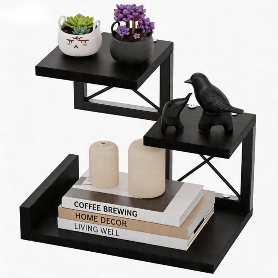 36 Inch Floating Shelves For Wall Rustic Black Wood Bedroom Set Of 4 ...